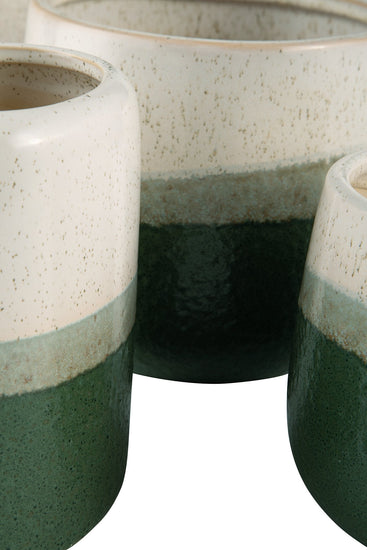 Modern style and functional use now go hand-in-hand with this 5-piece accessory set. Artfully glazed in cream and green, four vases with a variety of openings can host a bunch or a bud. They're beautiful on their own or displayed together with the matching tray.