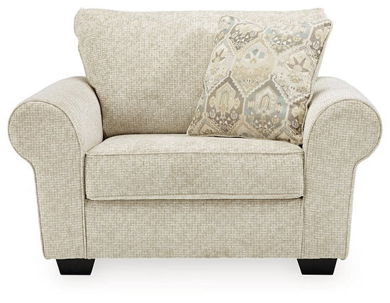 Blending classic elements like sumptuous flared roll arms with tailored box cushions and tapered black feet for up-to-date appeal, this oversized chair exudes that transitional aesthetic that looks and feels right at home. Offering plenty of room for everyone to make themselves comfortable, this large-scale chair is wrapped in a soft, chunky weave fabric loaded in texture. Light and lovely ivory upholstery makes for such an easy-breezy blend.