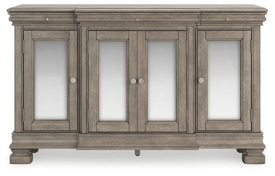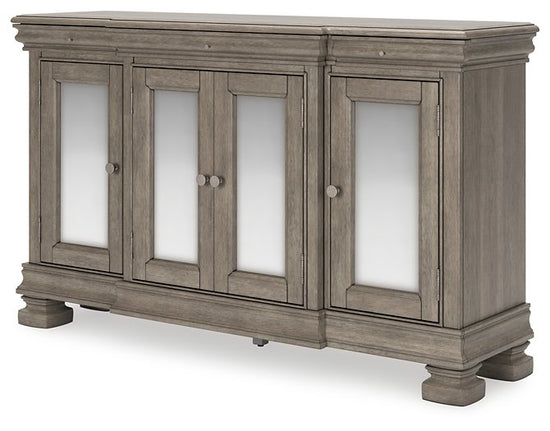 Traditional design motifs, redefined for today’s trends. Inspired by timeless Louis Philippe styling, this dining server is distinguished by its stunning attention to detail. You’ll find the light gray finish encourages an attitude of laid-back luxury. Complete with antiqued mirror doors and subtle storage drawers, it reigns over your dining room with an air of casual elegance.