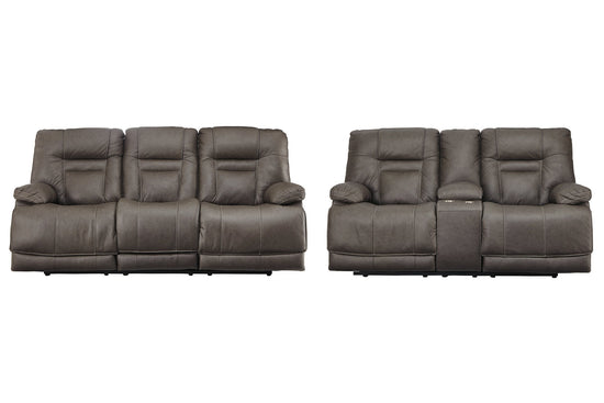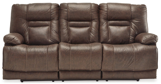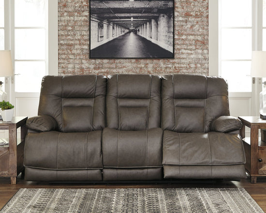 Big and bold, this power reclining sofa, loveseat and recliner package with Easy View™ power adjustable headrests delivers comfort at the touch of a button. Easily recline and position the headrests and lumbar supports to your liking for maximum comfort. Plus, with the convenient USB charging ports, cell phones or laptops can be charged without having to get up. The feel of heavy weight leather surrounds you via the cushioned seat, interior bustled back cushioning and pillow top armrest, while faux leather is on the back and sides for affordability. The effect seen in the umber-colored upholstery creates a rustic look—perfect for your modern or casual setting.