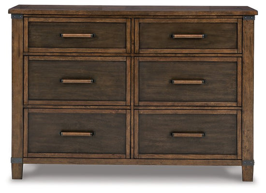 What a fresh interpretation of casual lifestyle design. Inspired by American craftsmanship, but with an elevated sensibility, this dresser blends distinctive details such as metal corner accents and smooth-gliding drawers for an easy-living aesthetic. Those who appreciate the beauty of wood will be doubly impressed with the two-tone walnut and burnt umber finish that imparts an added level of refinement.